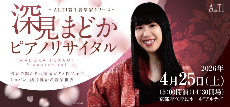 国内外で精力的に演奏活動を行う、新進気鋭のピアニスト深見まどかのリサイタル!【プログラム】武満徹: ピアノ作品全曲、ショパン: 24の前奏曲 Op28、酒井健治: 府民ホール委嘱作品(新作/世界初演) 【チケット発売日】メイト会員先行12/13(土)10時~、一般12/20(土)10時~
