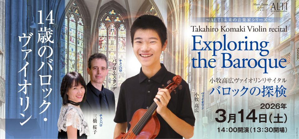 出演:小牧高広(バロック・ヴァイオリン)、三橋桜子(チェンバロ)、パブロ・エスカンデ(チェンバロ) 【チケット発売日(全席自由)】12月13日(土)10時~